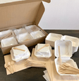 "Набір КОМБО" для Бенто тортиків:Контейнери з цукрової тростини (багасса) 15х15 см - 10шт. (Розмір Еко-боксу: за основою - 10см, висота - 8 см)- Дерев'яна виделка 16 см - 10 шт