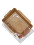 Крафтовий прямокутний контейнер з пластиковою кришкою, на 100% складається з якісного целюлозного картону. Максимальний обєм - 900 мл. Мінімальне замовлення - 1уп. В упаковці 50шт Має гладку поверхню і приємний на дотик. Не має сторонніх запахів.